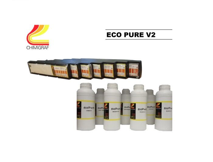 Ecosolventa tintes Chimigraf ecoPure — ir ekoloģiska šķīdinātāja bāzes tintes, kas speciāli paredzētas ražotājiem, kas rūpējas par vidi, personāla veselību un klientiem. Tintes ecoPure v2 nodrošina izcilu drukas kvalitāti interjera grafikai un augstu aizsardzību pret skrāpējumiem.