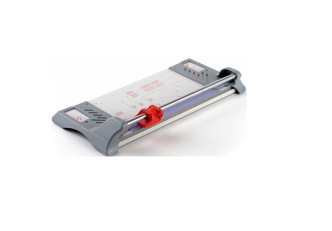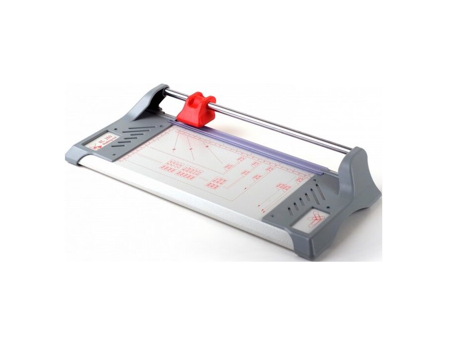 Manuāla papīra giljotīna no RC Systems “Trimmer Rolling-Cut RC 260” hobijam, skolai, mājai, foto un birojam – formāts A4. Giljotīnai ir tērauda pamatne ar sānu malām, kas izgatavotas no plastmasas. Pelēka krāsa RAL 7036. Krāsota ar pulverkrāsu pret skrāpējumiem. Caurspīdīga un automātiska papīra prese.