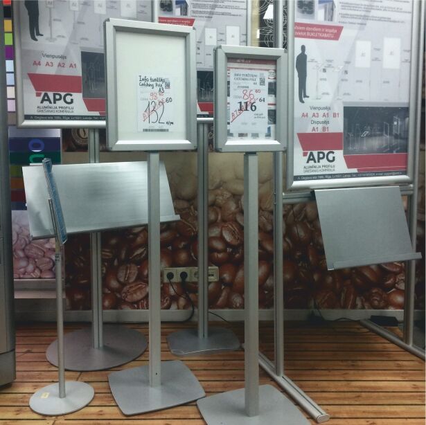 | stenda plakāta izmērs | A1 (594 x 841mm), A2 (420 x 594mm), A3 (297 x 420mm), A4 (210 x 297mm) |