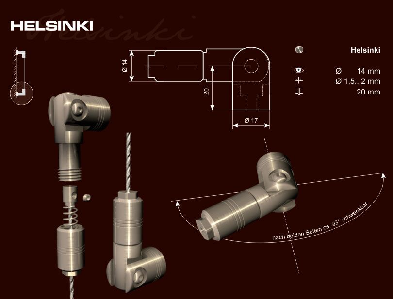 Helsinki – troses stiprinājums no nerusējoša tērauda plāksnīšu montāžai pie sienas.