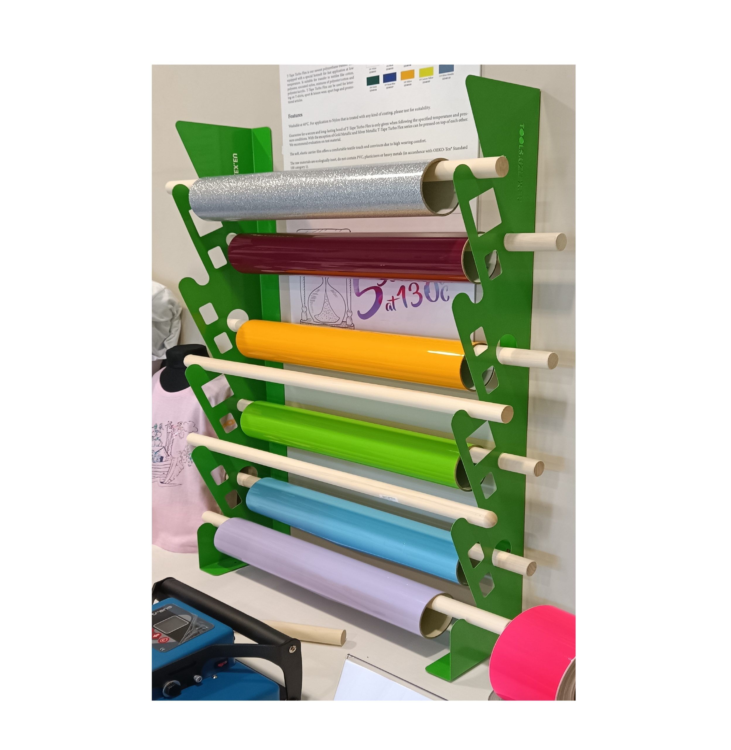 UZLEX ruļļu turētājū var nostuprināt pie sienas. Piemērots 5 ruļļiem. Izmērs: 940 mm (augstums)